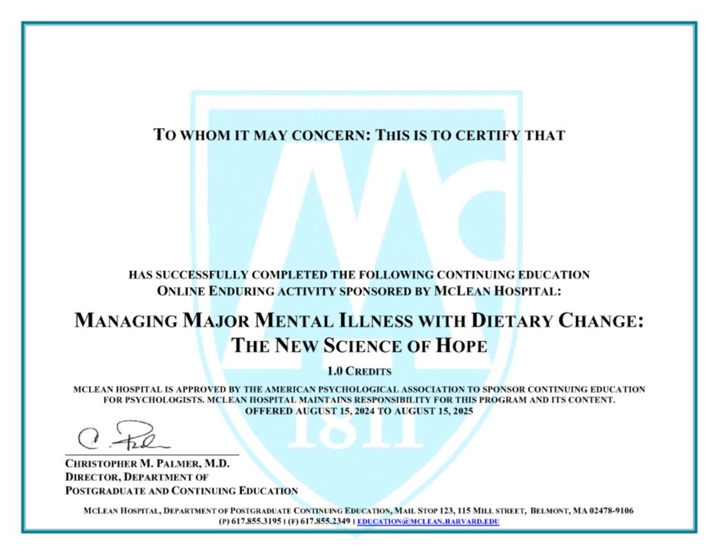 Jeg har blant annet tatt kurset for klinikere av Dr. Ede. Jeg er med i ulike internasjonale grupper, inkludert Keto for Mental Health og en gruppe for Food Addiction Professionals.